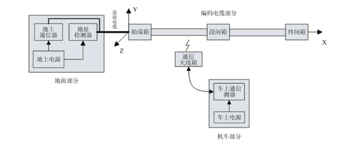 地上位置檢測(cè)與通信系統(tǒng)是利用電磁感應(yīng)原理來實(shí)現(xiàn)位置檢測(cè)和數(shù)據(jù)通信的。它由地面部分、編碼電纜部分、車上部分組成。其中地面部分由地上通信器、地址檢測(cè)器、地上電源組成;編碼電纜部分由始端箱、編碼電纜、段間箱、終端箱組成;車上部分由車上電源、車上通信器、天線箱組成。