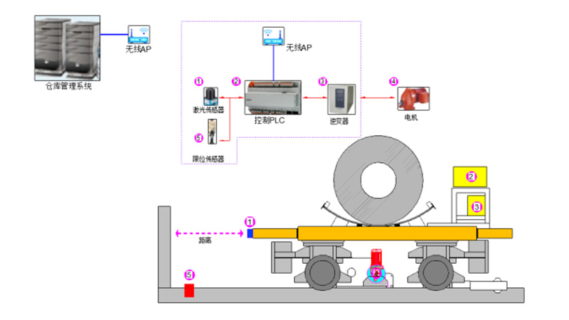 過跨車主要用于庫與庫之間、跨與跨之間轉(zhuǎn)運(yùn)物料,通過對過跨車進(jìn)行無人化改造,實(shí)現(xiàn)自動轉(zhuǎn)運(yùn)。